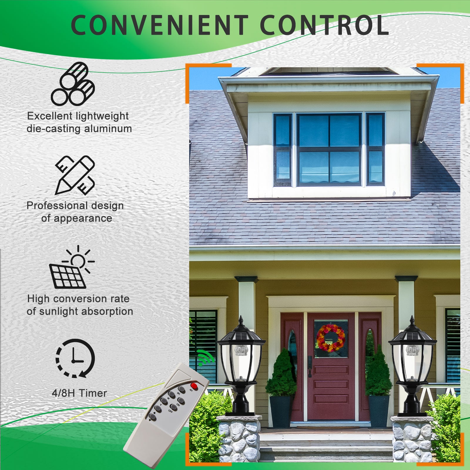 Product Name:20"(H) Black Solar Powered LED Outdoor Lantern, Vintage Garden Light with Elegant Glass Design for Pathways, Yards, and Patios (2-Pack)