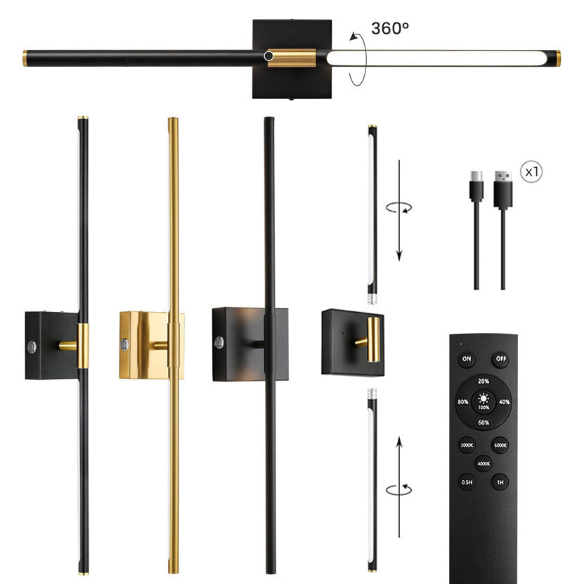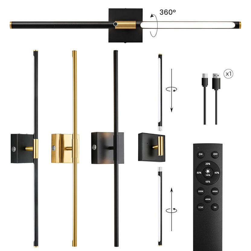 Modern style: Sleek black/gold/black-gold iron body with PC shade.